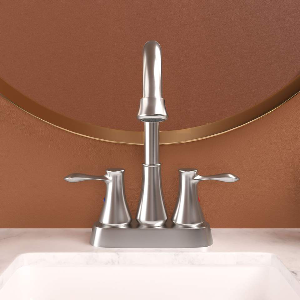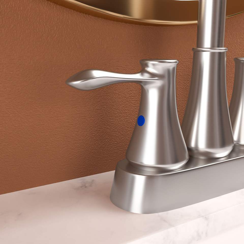 Rubinetto da Bagno a 2 Maniglie da 4 Pollici in Nichel Spazzolato con Scarico Pop-up e 2 Linee di Alimentazione dell'Acqua per Lavabo