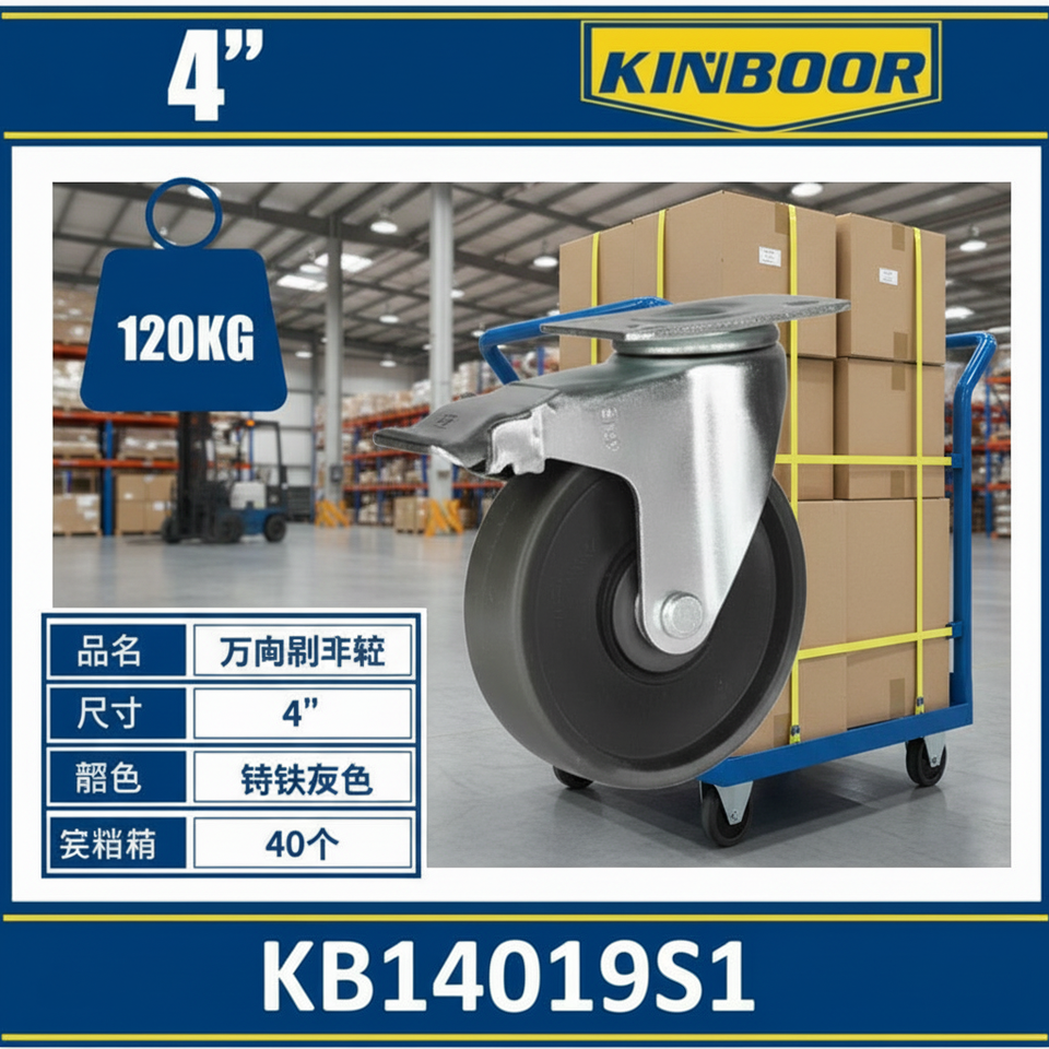 Freno a ruota girevole da 4 pollici per impieghi gravosi 120KG capacità di carico fornitura grossista PP trasporto in acciaio in Nylon poliuretanico