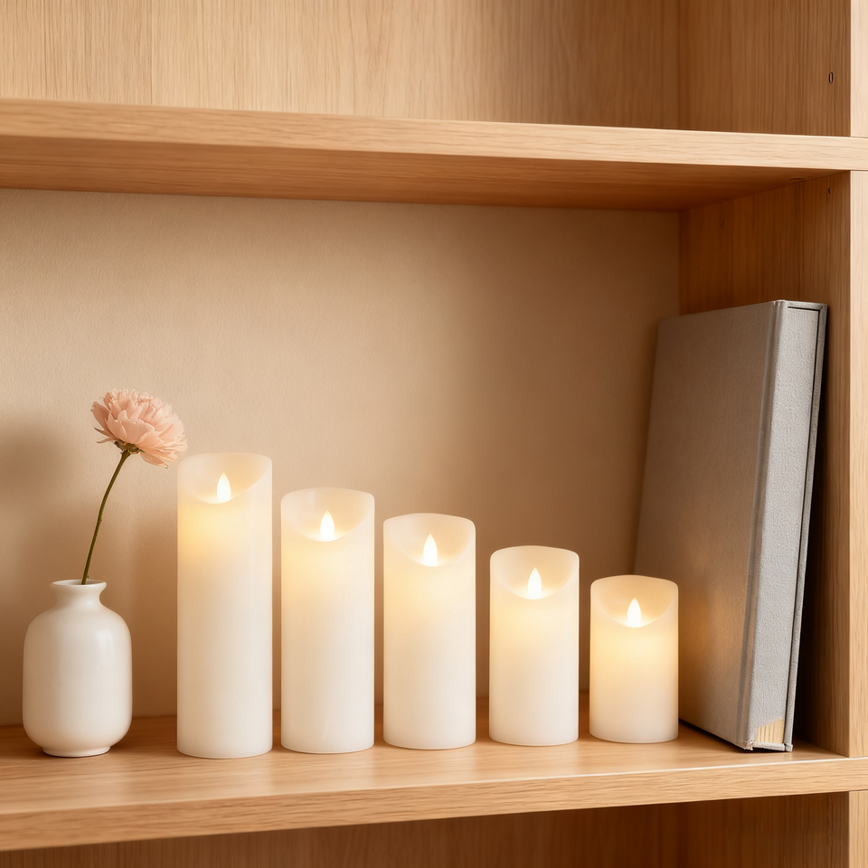 4 pollici Fuso bordo liscio della candela del LED, di colore avorio, a batteria