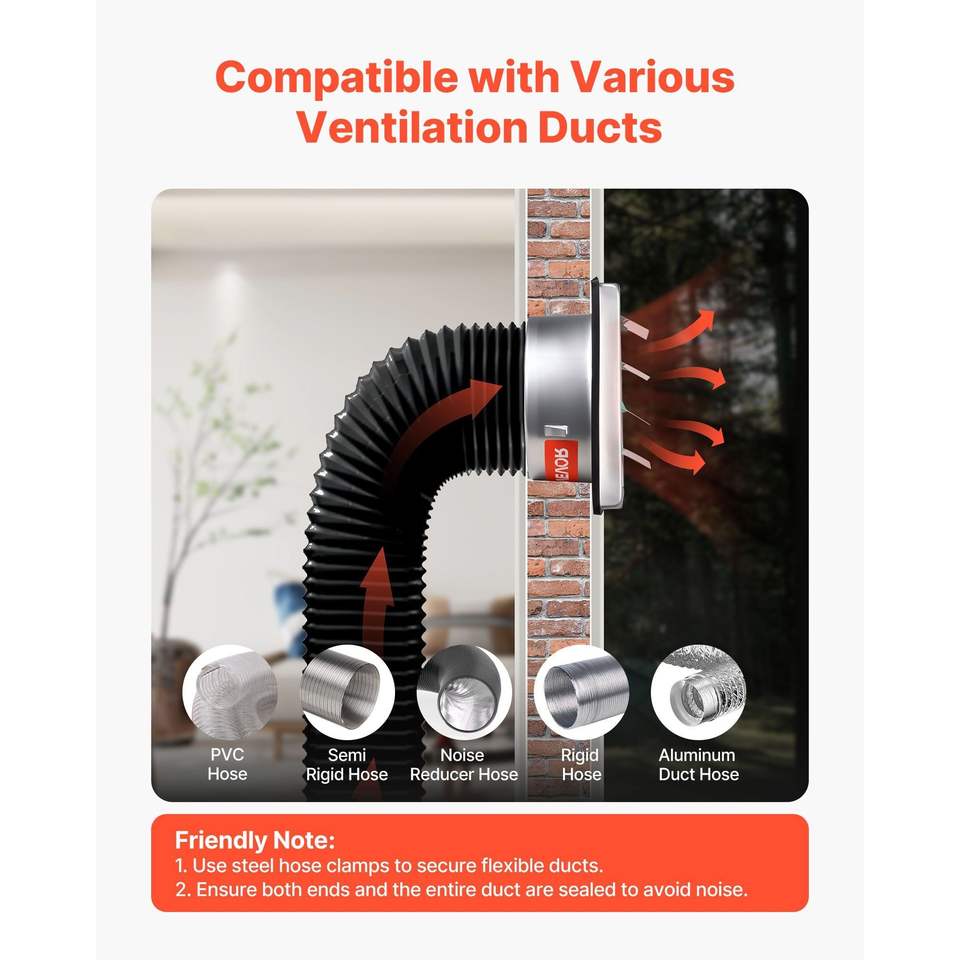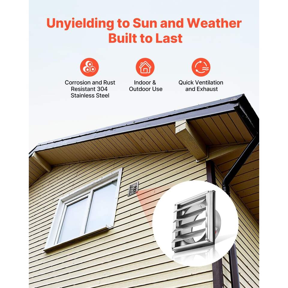 4-Inch Premium Stainless Steel Wall Vent Cover Louvered Square AC Gable Cover with Noise Reducing Rubber Gasket