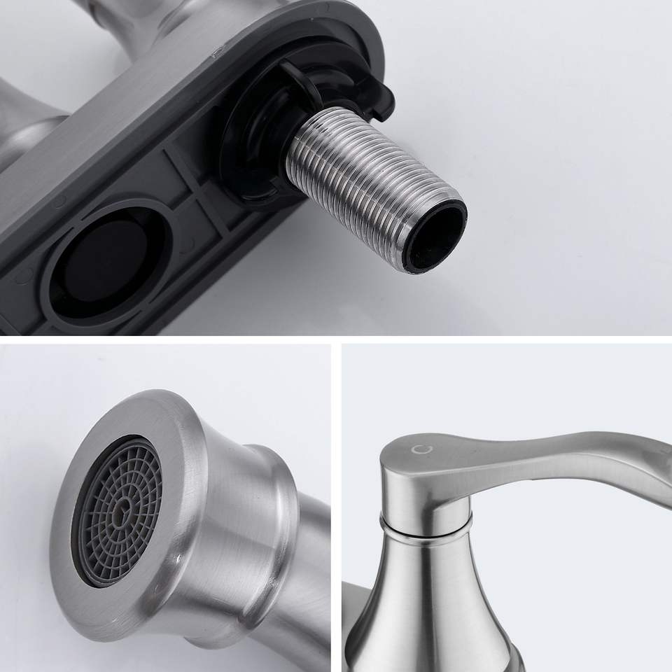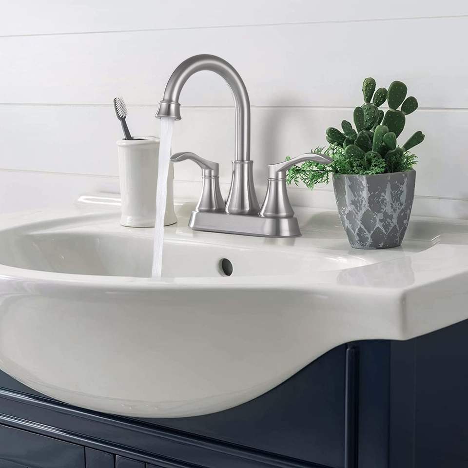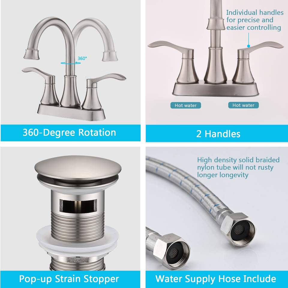 Rubinetto da Bagno a 4 Pollici con Bocca Girevole a 360 Gradi, Finitura Nichel Spazzolato e Scarico a Scomparsa