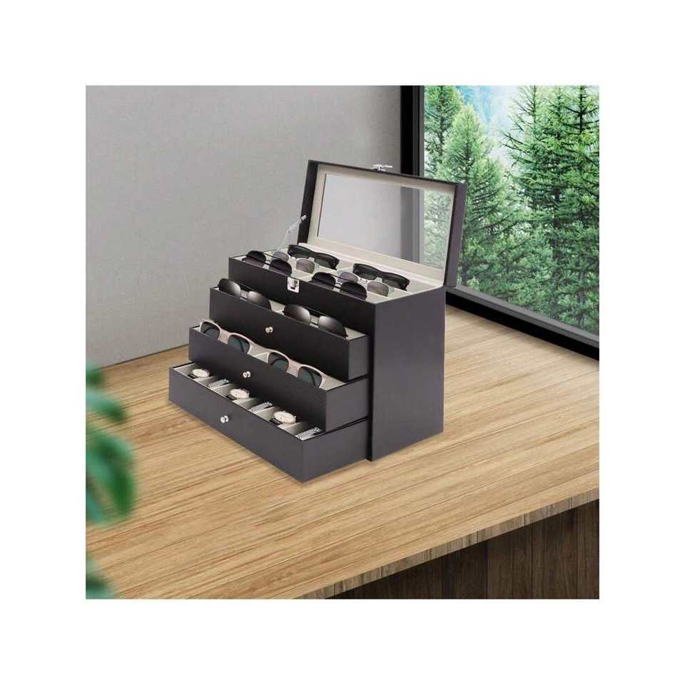 4-Layer nero oculari porta portaoggetti scatola per orologi in vetro solare con cassetti chiudibili a chiave per organizzatori di gioielli