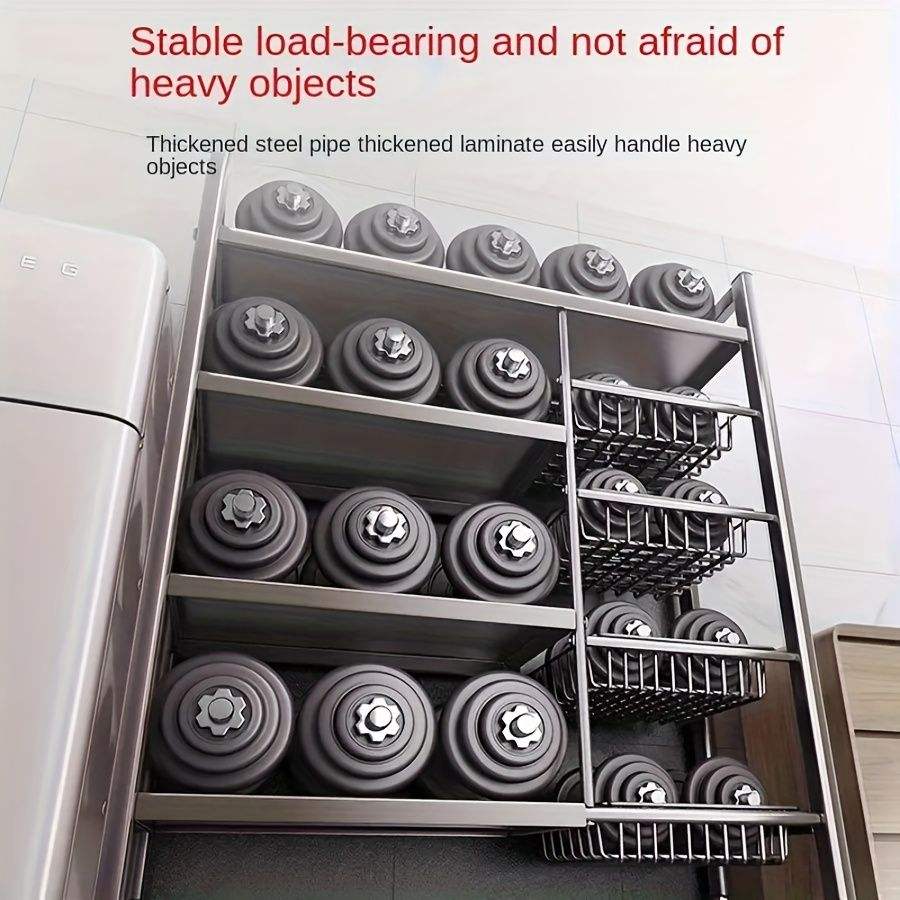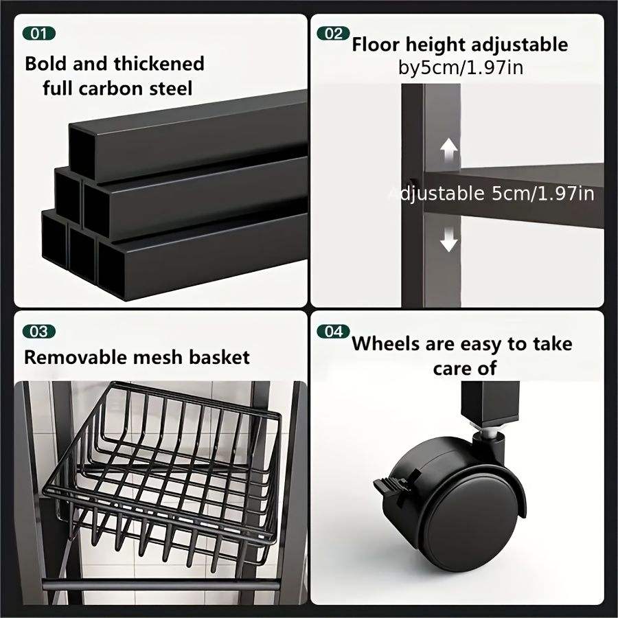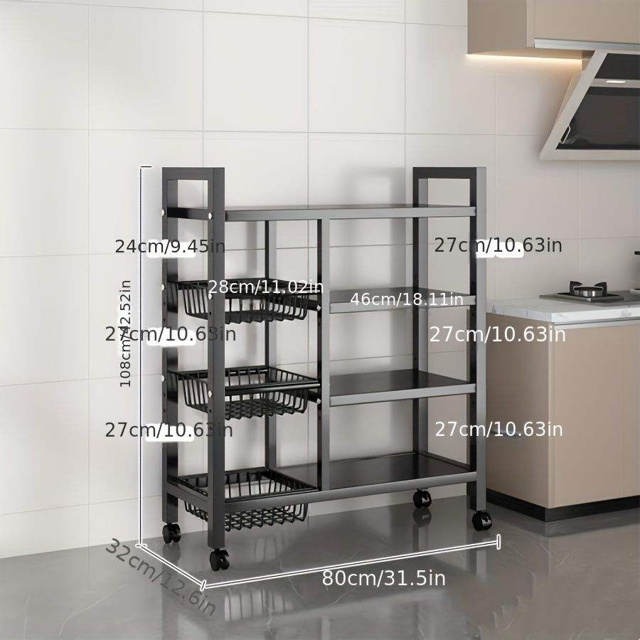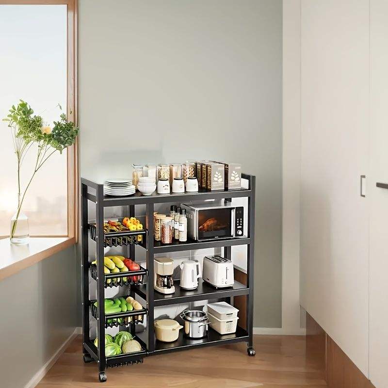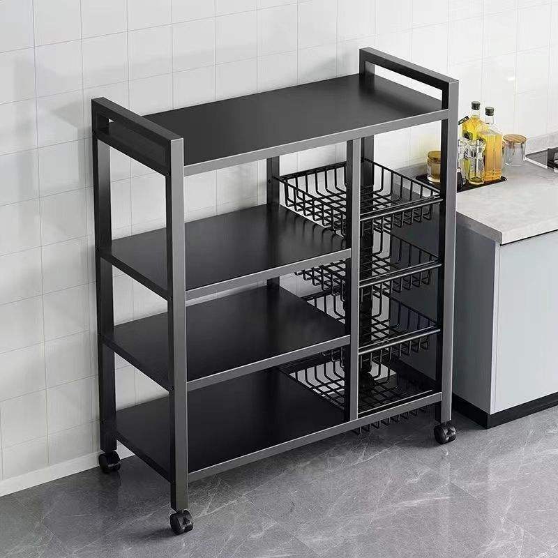 Scaffale Mobile da Cucina a 4 Livelli con 3 Cestelli in Acciaio al Carbonio e Ruote Scorrevoli Universali