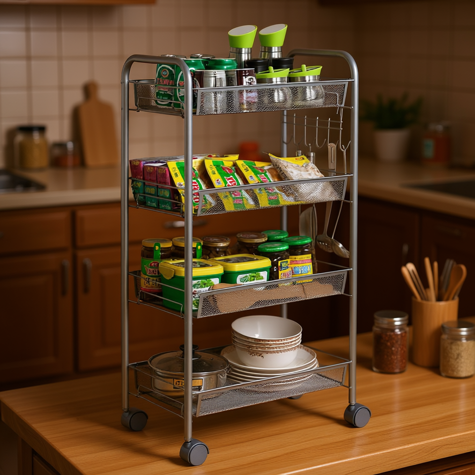 Carrello portaoggetti rimovibile a 4 livelli, colore argento D0100HEEBDG, con stile a rete a nido d'ape