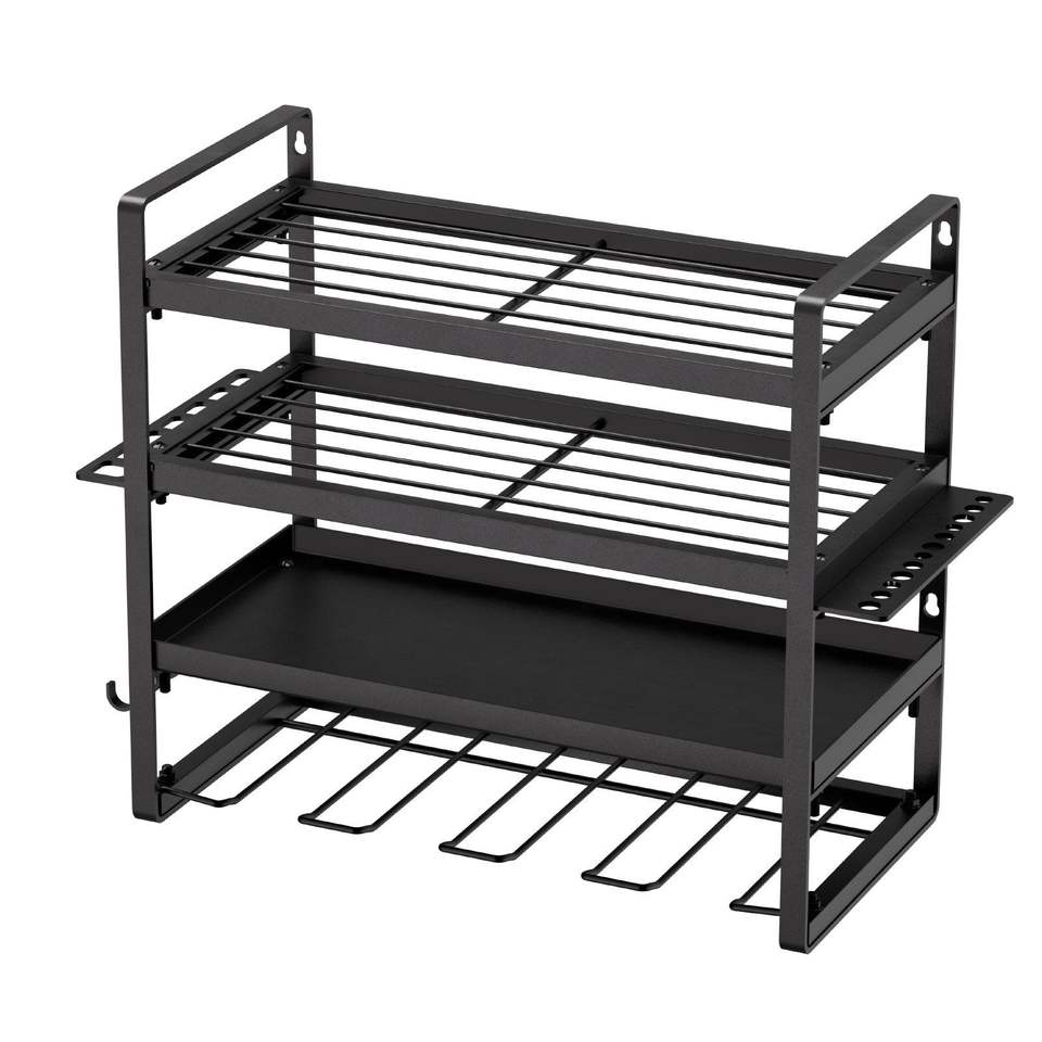 Organizzatore da Parete a 4 Livelli per Utensili Elettrici con 4 Supporti per Trapani, Porta Attrezzi e Cacciaviti