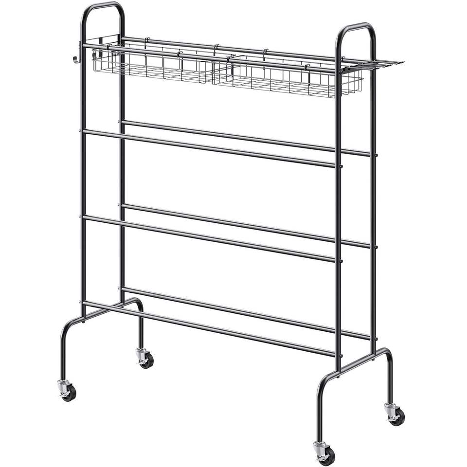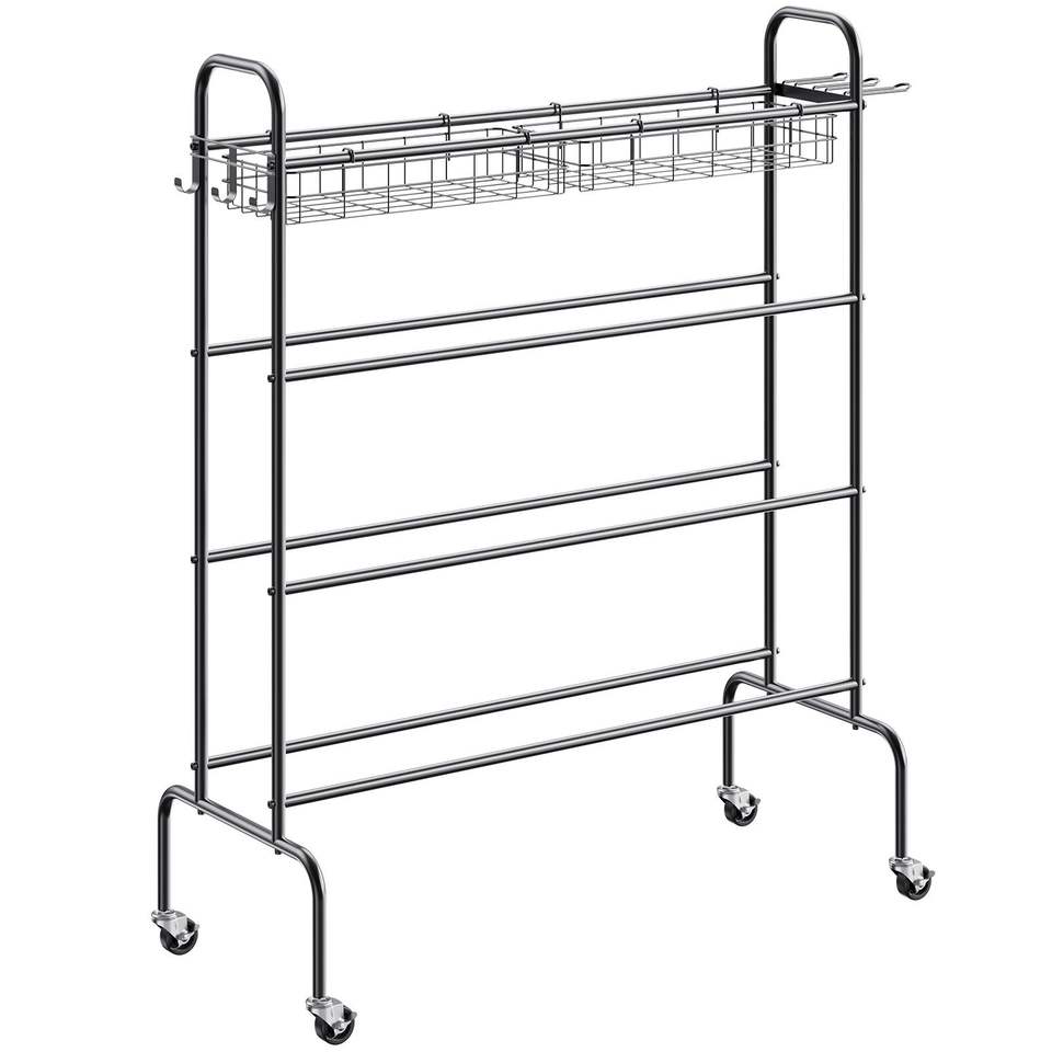 Supporto per Allenamento di Tiro a Canestro a 4 Livelli con Ruote, Organizzatore per Attrezzature Sportive, Ganci per Attrezzature da Campo da Basket