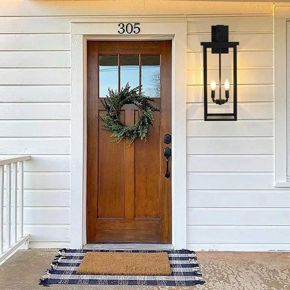 Lampada da parete per esterni a 4 luci, nera, resistente alle intemperie, 76 cm (30 pollici) di altezza, 1 pezzo, applique da parete per portico, giardino, patio (senza lampadine)
