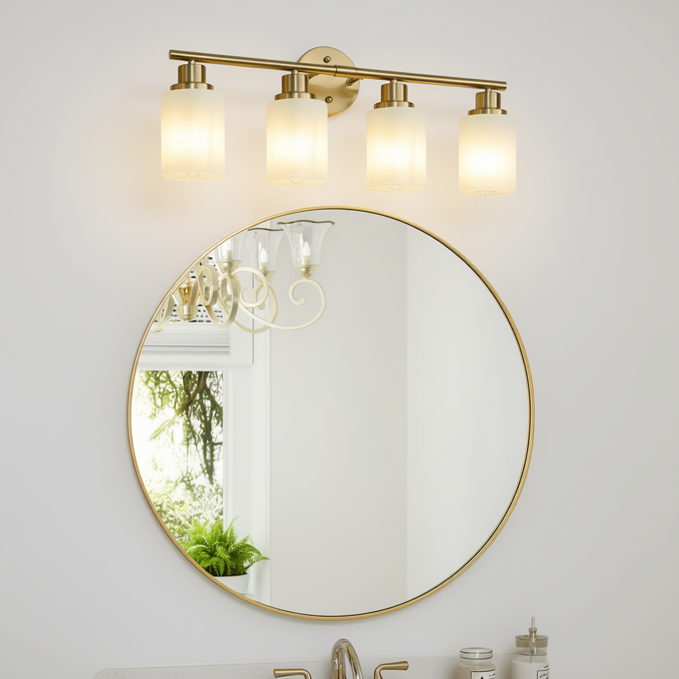 Applique da Parete Moderna in Ferro da 24 Pollici con Finitura Dorata e Paralumi in Vetro Satinato, Illuminazione per Bagno a LED con Luce Bianca Calda