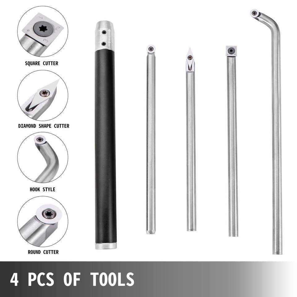 4 PCS Set Replaceable Diamond Shape Carbide Lathe Tools Square Cutters Grip Handle Wood Turning Tools for Craft DIY Hobbyists