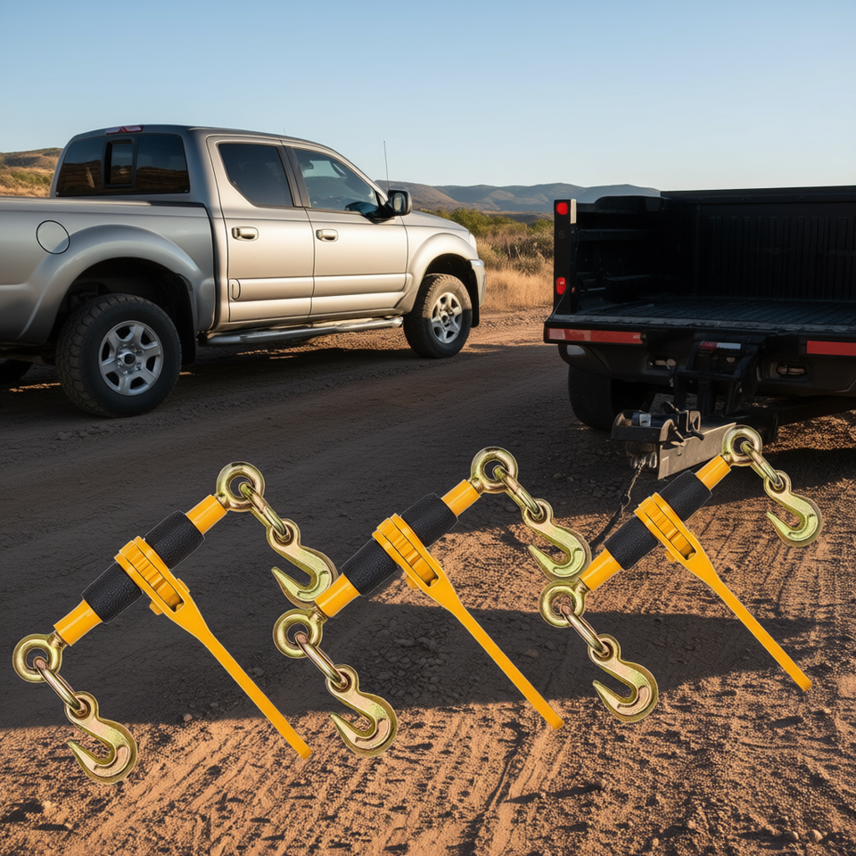 Tenditore a cricchetto con catena in acciaio da 1/4-5/16 pollici, 2600 libbre, gancio a J per il fissaggio sicuro e il recupero di veicoli