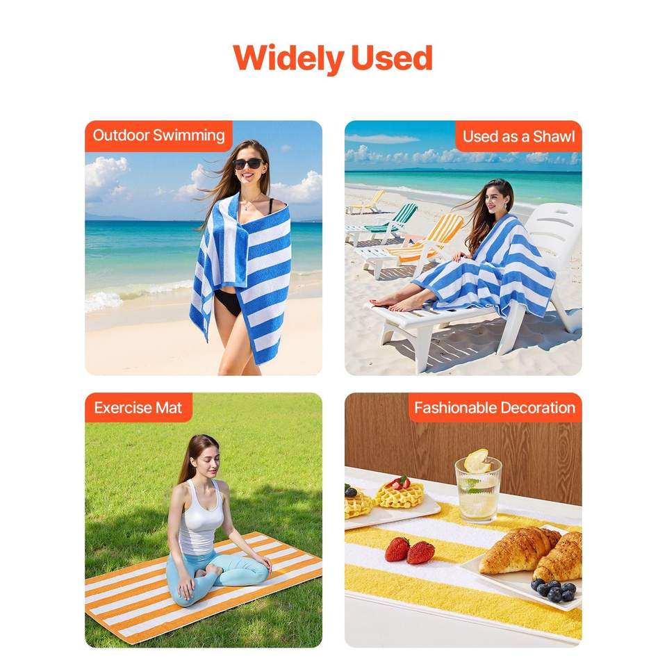 Set di 4 Teli da Spiaggia Oversize 100% Cotone 30 X 60, Teli da Piscina Grandi a Righe Cabana, Asciugatura Rapida, Morbidi e Spessi