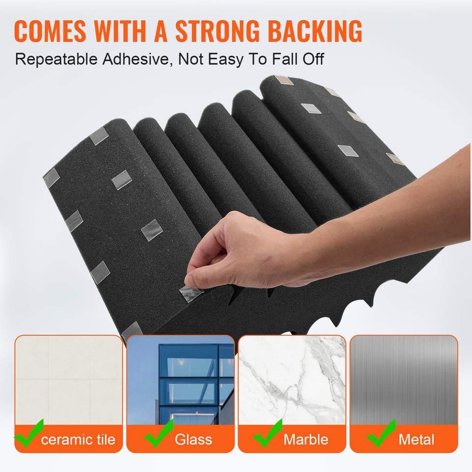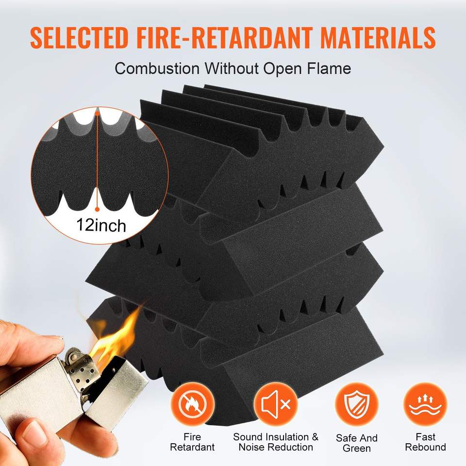 Set di 4 Pannelli Acustici in Schiuma ad Alta Densità, Ignifughi, 16,5 x 6,3 x 12 Pollici, Pannelli Adesivi per Pareti
