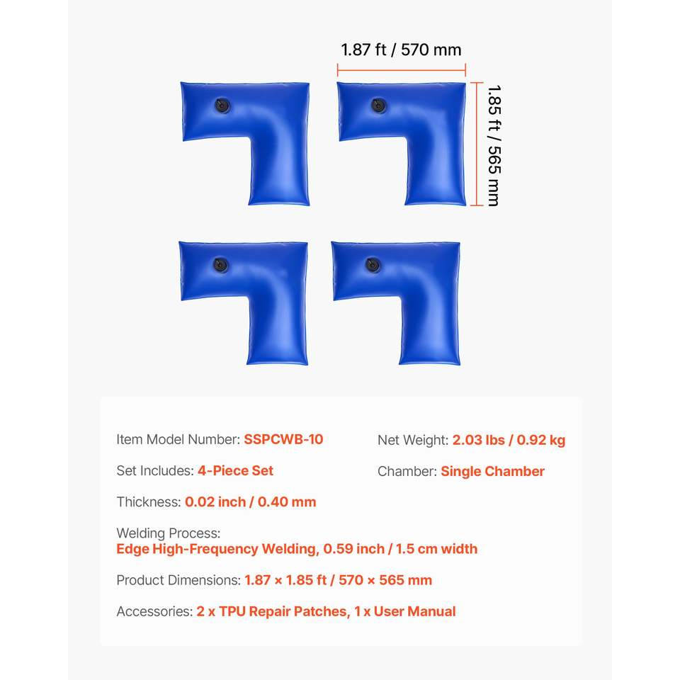Confezione da 4 Tubi d'Acqua Angolari per Piscina 22.4 x 22.2 Pollici, Tappo a Vite Invernale Antiperforazione, PVC Resistente 0.4mm, per Coperture e Avvolgitori per Piscine
