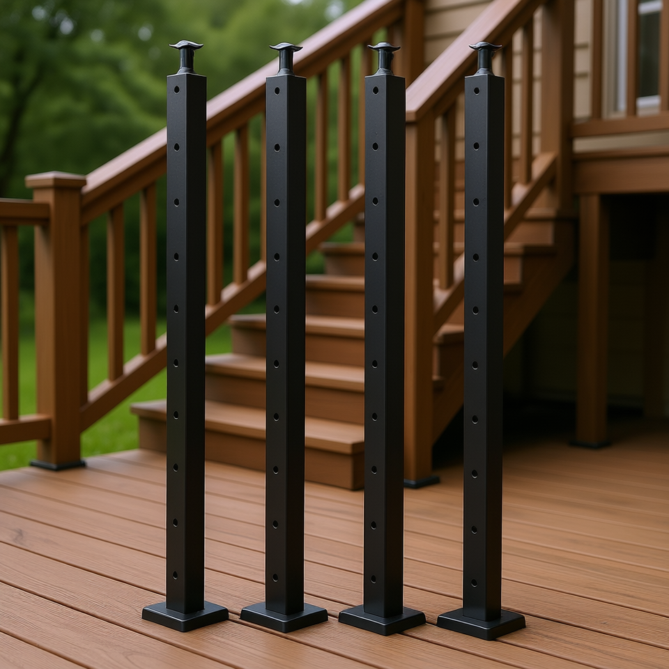 4-Pack 36x1x2 Stainless Steel Curved Shape Bolt Fixed Cable Railing Post Pre-Drilled Holes Black Deck Outdoor Modern Design