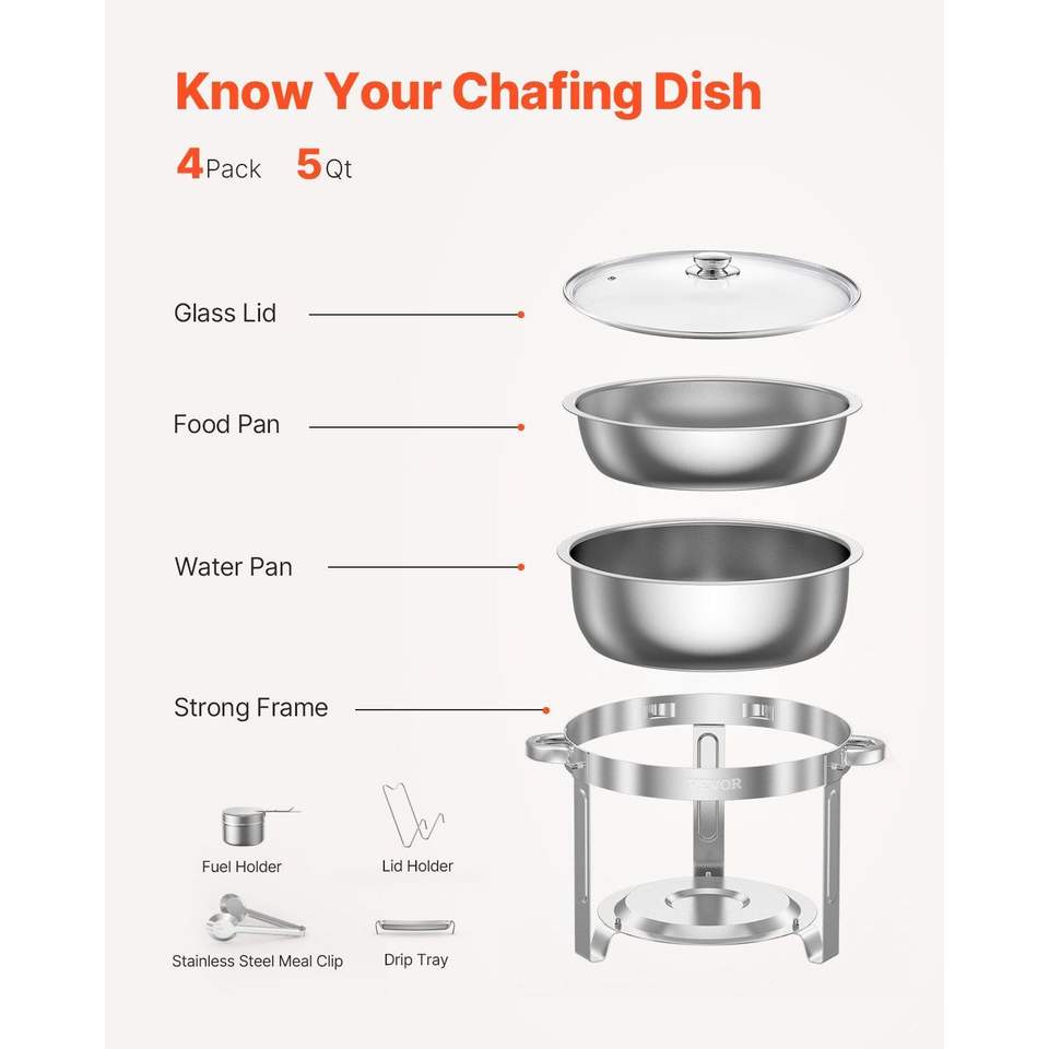 Set da 4 Chafing Dish in Acciaio Inox da 5 Qt, Set Buffet con 4 Pentole Grandi, Scaldavivande per Catering con Coperchio in Vetro, Decorazioni per Feste e Tavoli