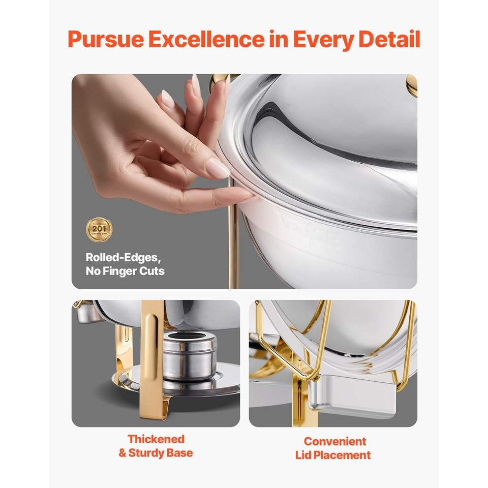 Set da 4 Chafing Dish in Acciaio Inossidabile da 5 Qt, con 4 Vasche Grandi, per Buffet e Catering, Scaldavivande con Coperchio e Sistema di Riscaldamento ad Acqua