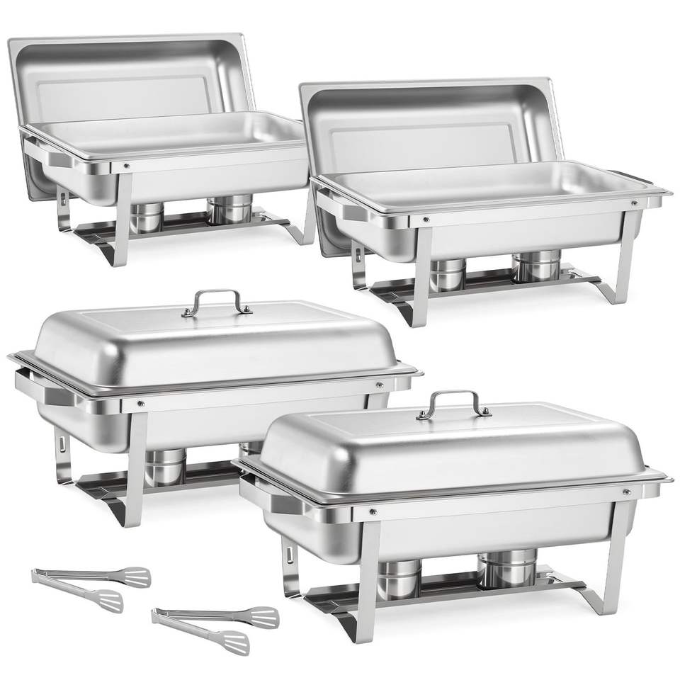 Set di 4 Chafing Dish Rettangolari in Acciaio Inossidabile da 9 Qt, Scaldavivande Completo con Manico Cavo, Attrezzatura per Mantenere il Calore