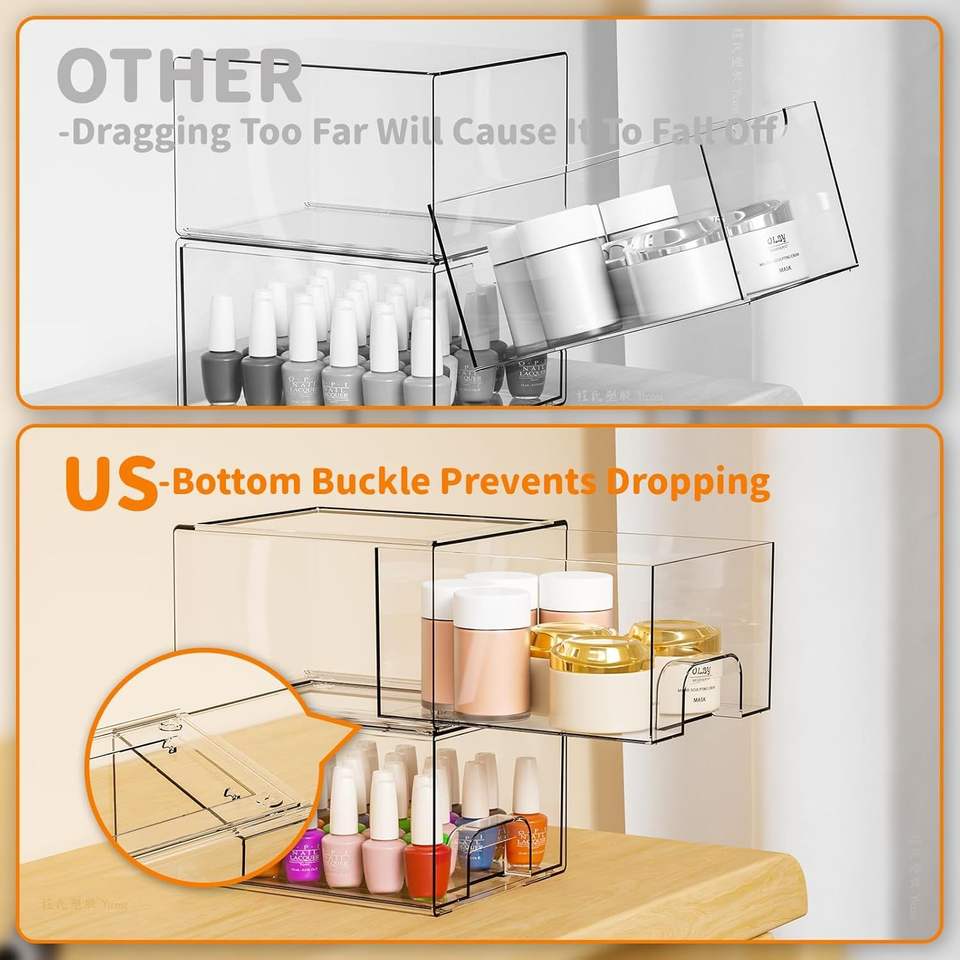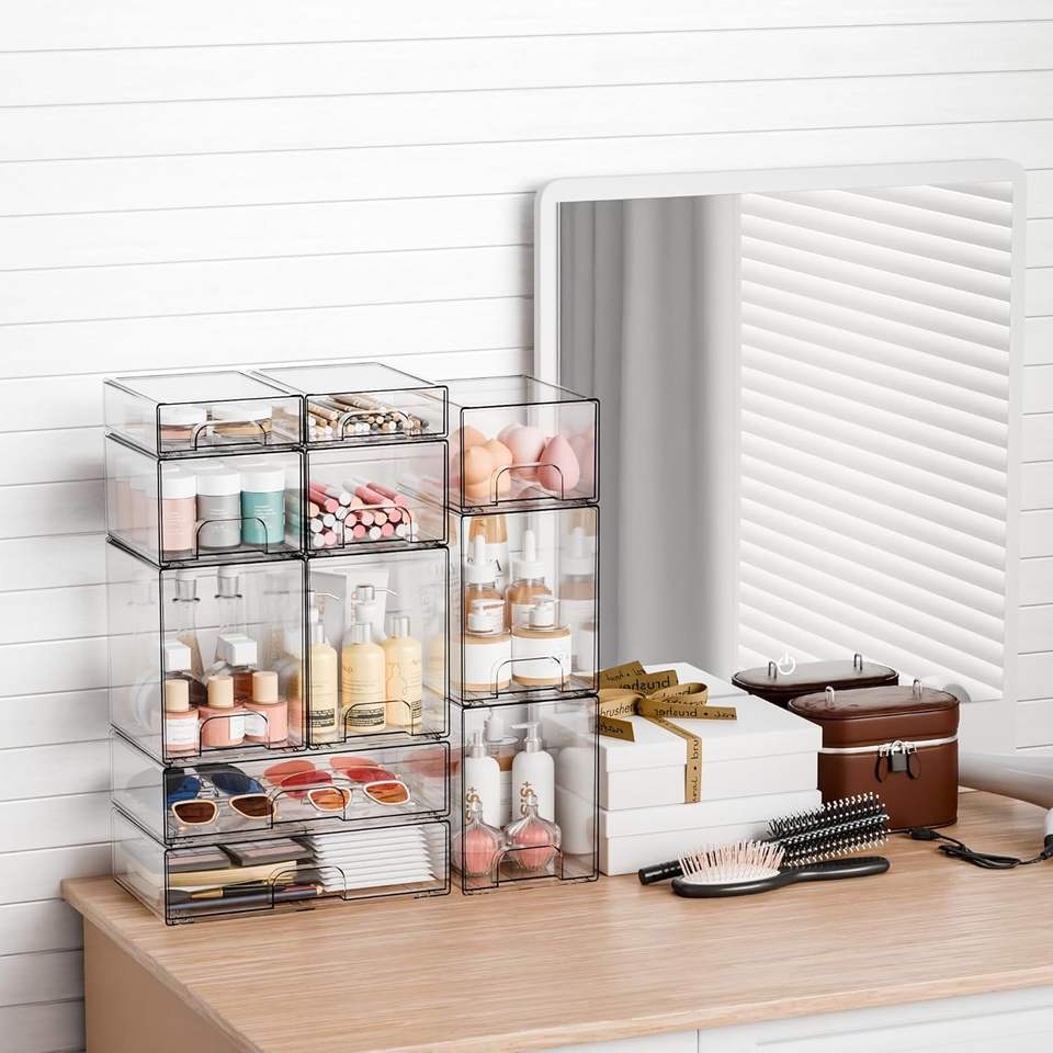 Set di 4 Cassetti Impilabili in Acrilico Trasparente Alti 4,4 Pollici, Organizzatori per Bagno, Contenitori per Organizzazione