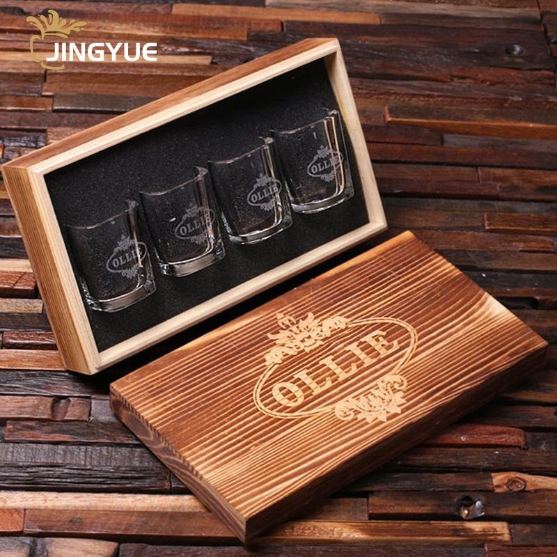 4 Pack Logo personalizzato personalizzato 2 oz Espresso Mini bicchiere chiaro Shot bicchieri con scatola di legno per regalo di compleanno