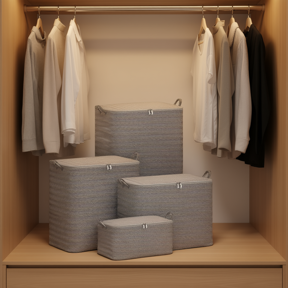 Closet Organizer Storage Baskets 50x40x30cm Foldable Non Woven Rectangular Wardrobe Clothes Storage Minimalist Design