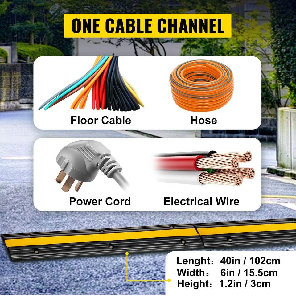 Set di 4 Rampe Protettive per Cavi in Gomma, Capacità di Carico 22046 Lbs, 1 Canale, per Copertura Cavi e Fili