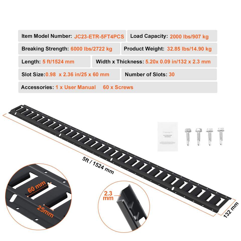 Kit di fissaggio per carichi pesanti E-Track da 4 pezzi, 5 binari in acciaio per carichi pesanti fino a 900 kg, accessori per il controllo del carico