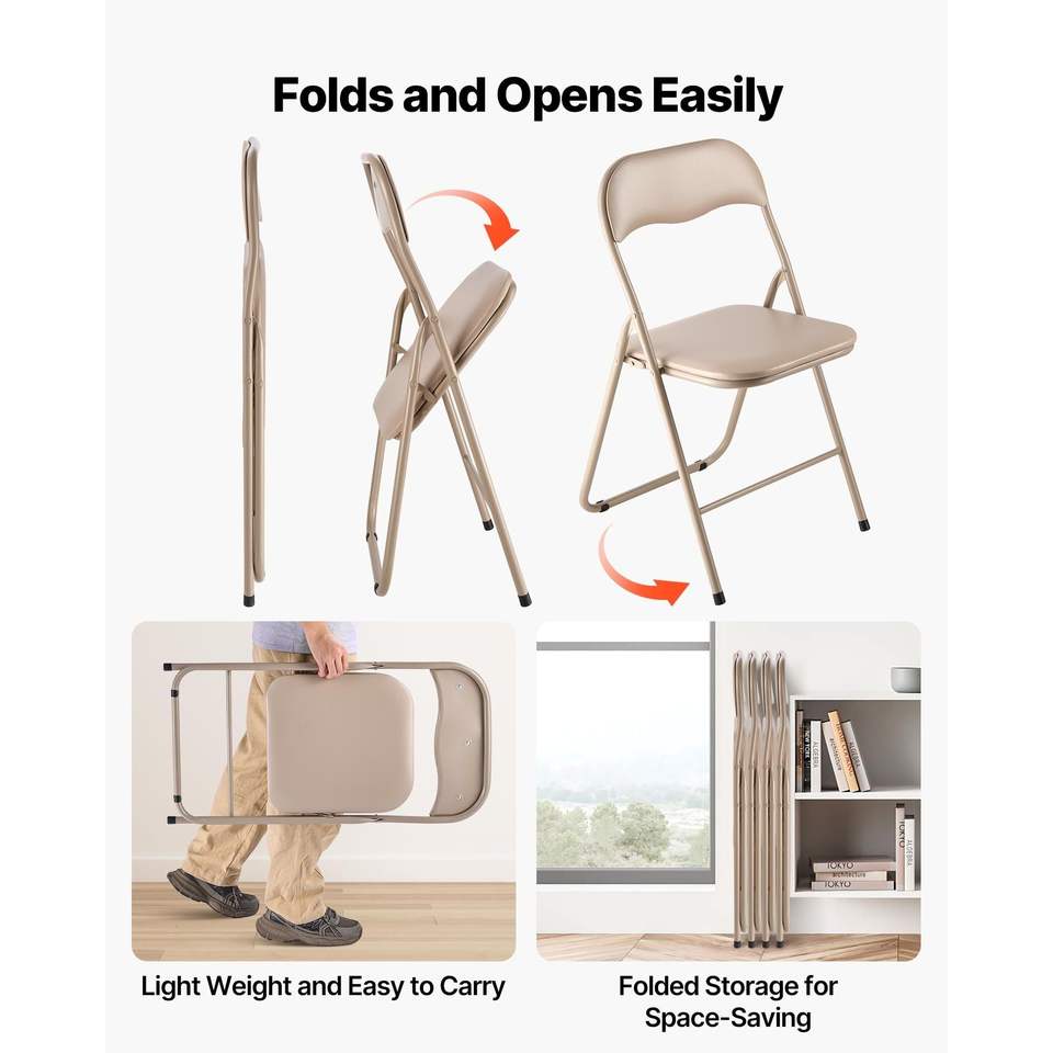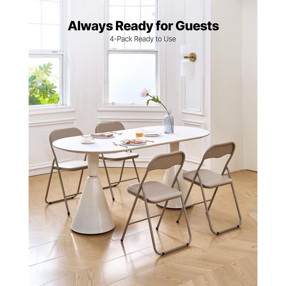 Set di 4 Sedie Pieghevoli con Telaio in Metallo Resistente, Cuscino Imbottito, Sedia Portatile in Pelle, Tavolino, Seduta Confortevole