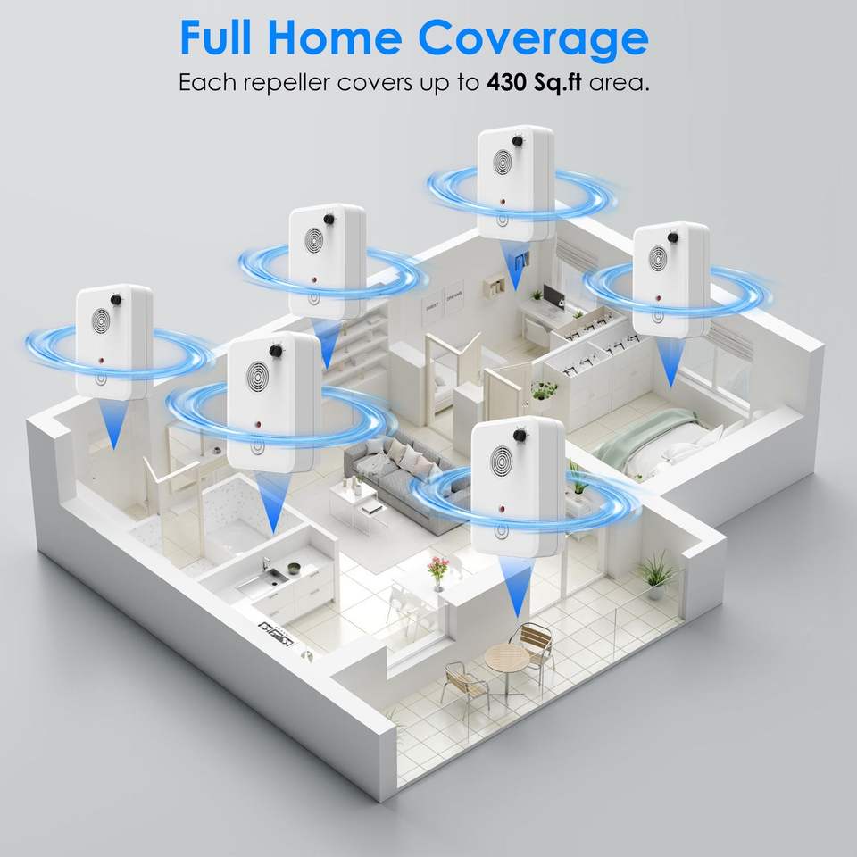 Dispositivo Dissuasore Ultrasuoni per Topi e Pipistrelli da Interni, Confezione da 4, Repellente per Uccelli da Inserire nella Presa, 6 Livelli Regolabili per Soffitte, Cucine e Aree di Traffico Intenso