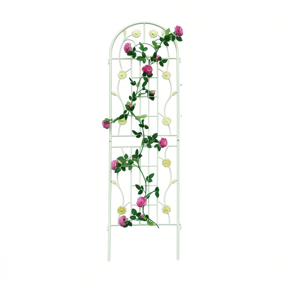 Metal Garden Trellis 71" X 19.7" Rustproof Outdoor Support For Climbing Plants Cream White Classic Style