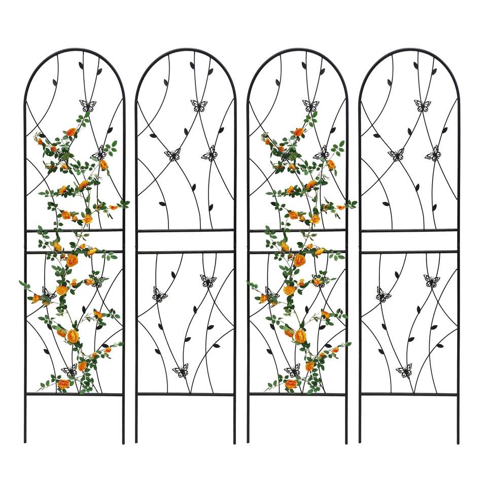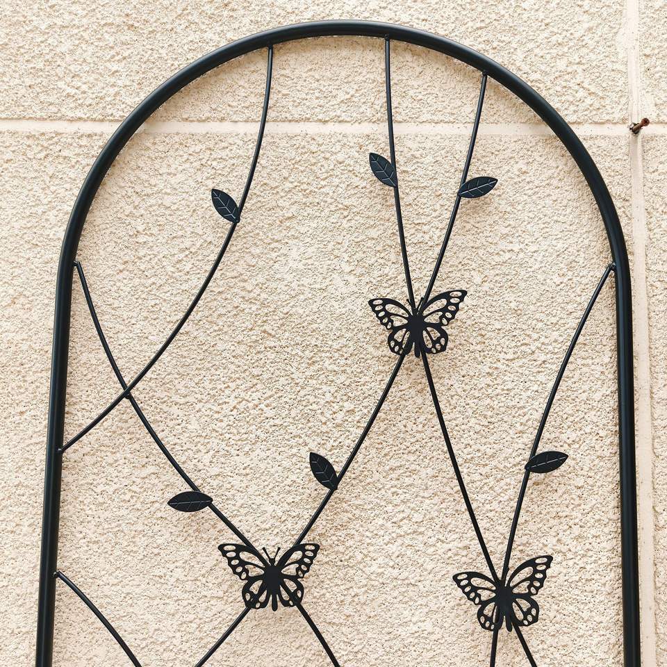 Set di 4 tralicci da giardino in metallo nero antiruggine da 180 cm x 50 cm per piante rampicanti e decorazioni a forma di farfalla