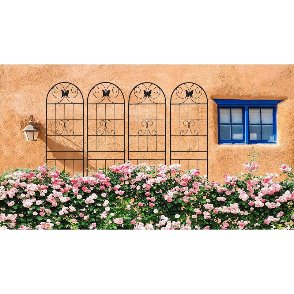 Set di 4 tralicci da giardino in metallo antiruggine neri da 180 cm x 50 cm per piante rampicanti