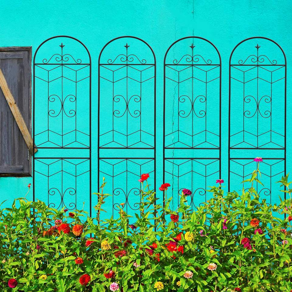 Set di 4 Tralicci da Giardino in Metallo Antiruggine 220 cm x 50 cm Neri, Supporto per Fiori da Esterno per Piante Rampicanti