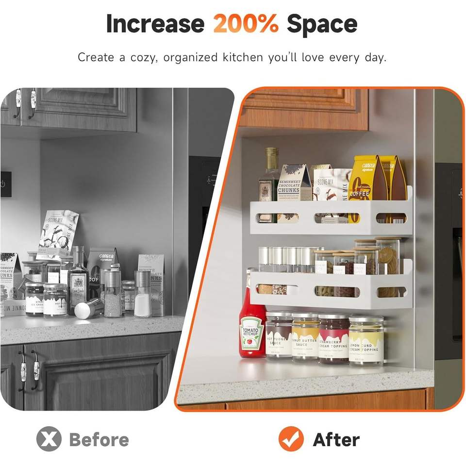 Set di 4 Portaspezie Magnetici Robusti per Frigorifero, Organizzatore Multiuso con 4 Ganci per Cucina e Bagno