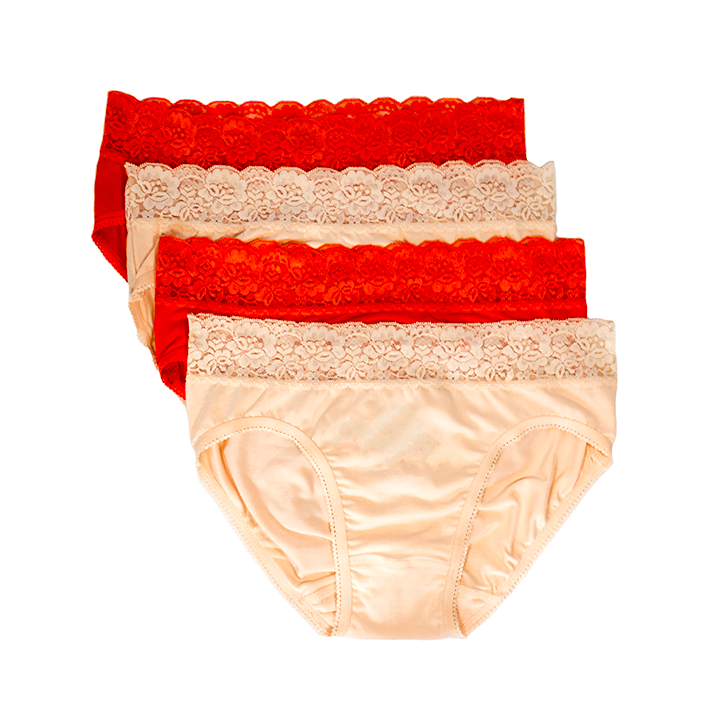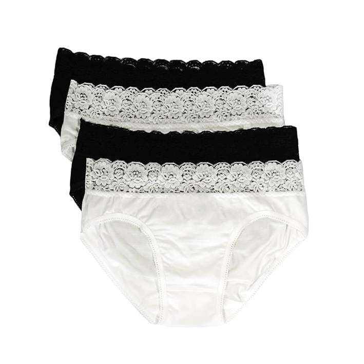 4-Pack Women's Bamboo Bikini Briefs High-Low Rise Triangle Style Sexy Lace Decorated Knitted Panties Soft High S M L XL