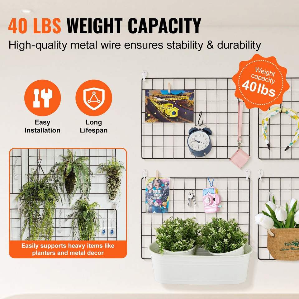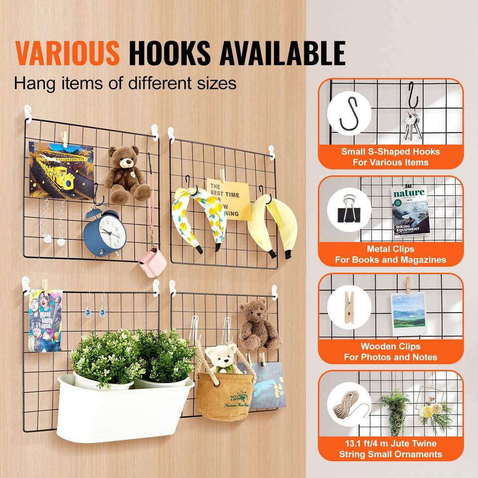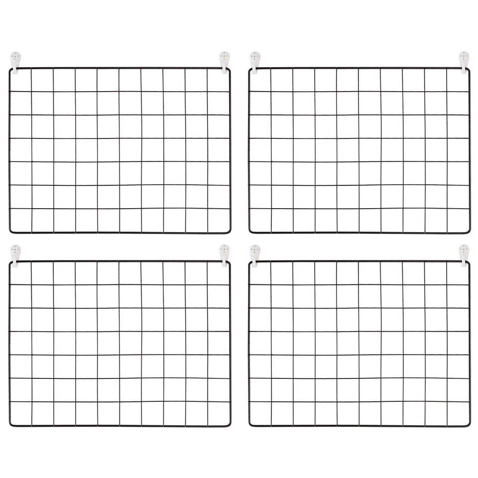 Set di 4 Pannelli a Griglia Metallica per Parete, Organizzatore per Esposizione Foto e Immagini, Sistema di Archiviazione a Parete per Casa e Ufficio