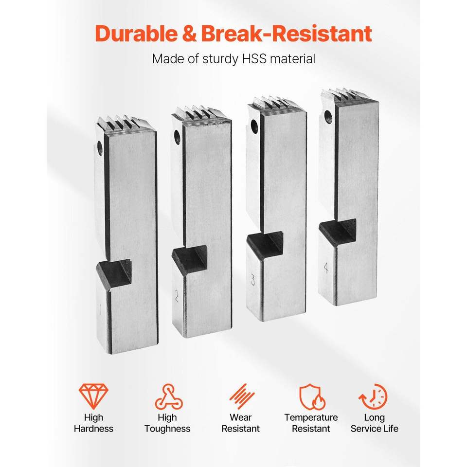 Set da 4 Maschi per Filettatura Tubi HSS per Mano Destra, da 2-1/2 a 4 Pollici NPT, per Macchine Filettatrici Integrate