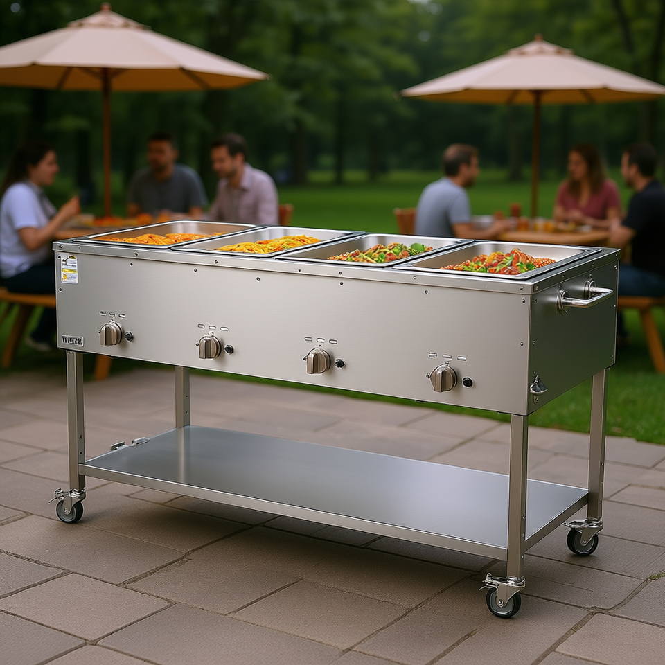 Scaldavivande Commerciale a 4 Scomparti in Acciaio Inossidabile a Propano con Controllo Indipendente della Temperatura per Ristoranti e Campeggio all'Aperto