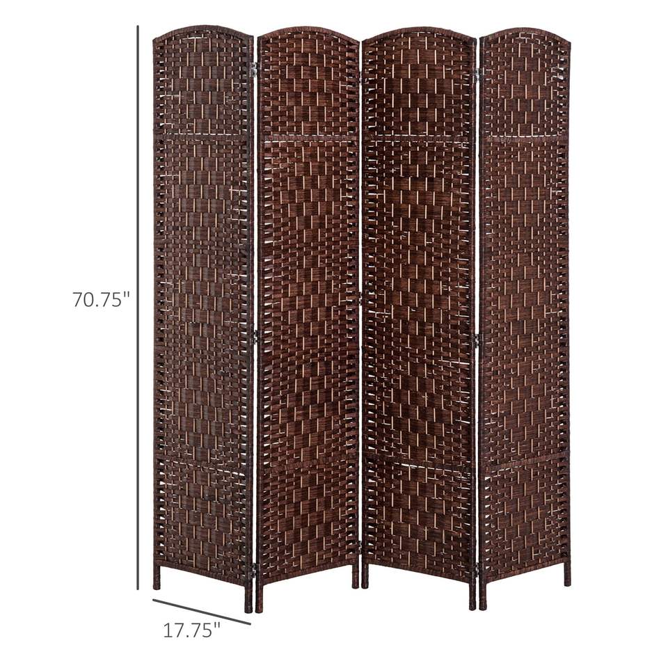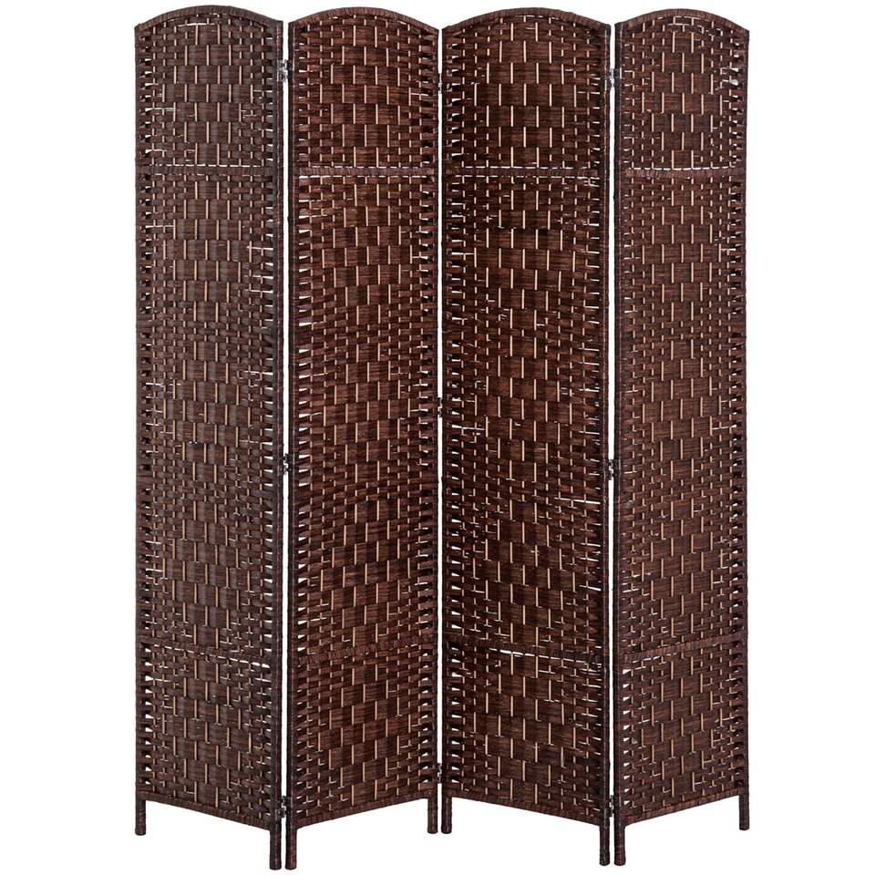 4-Panel Brown Wicker Room Divider 6' Tall Freestanding Folding Privacy Screen