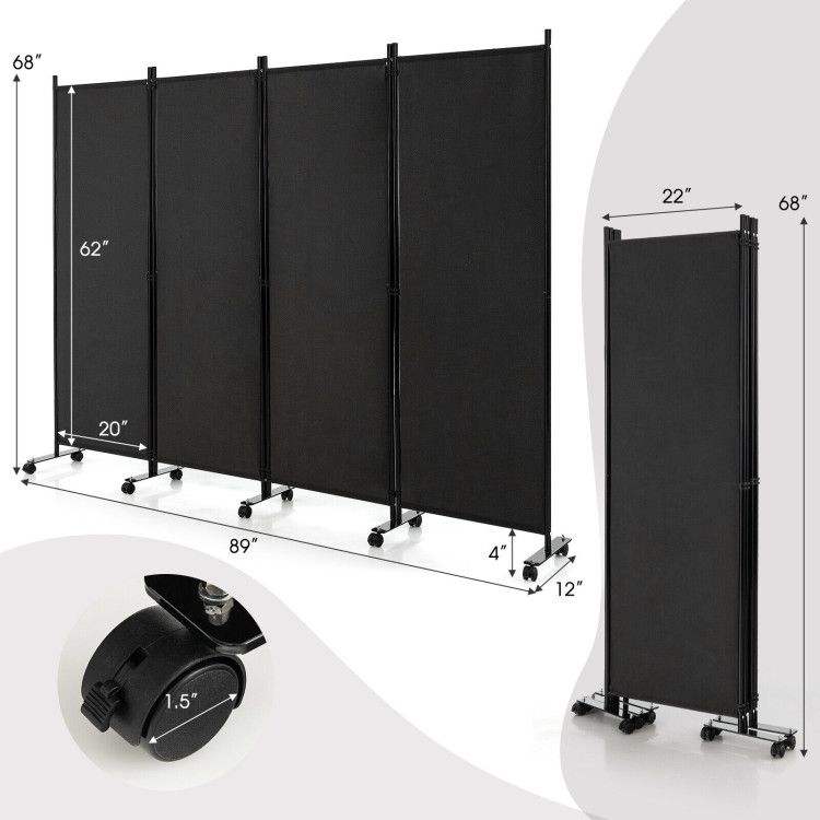 Divisorio Pieghevole a 4 Pannelli con Ruote Bloccabili, Schermo per la Privacy