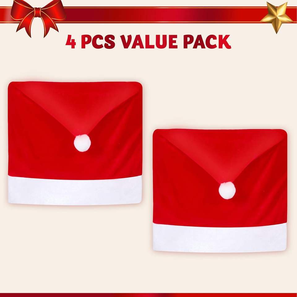 Set di 4 Coprisedia Natalizi Rossi a Forma di Cappello di Babbo Natale per Decorazioni Festive