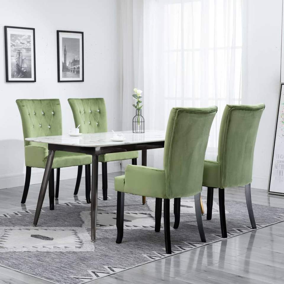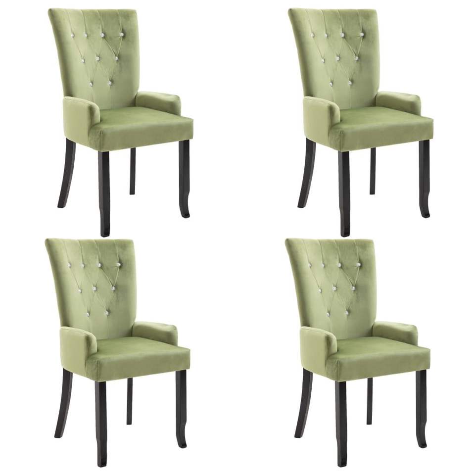 4 Pcs Light Green Velvet Dining Chair with Armrests