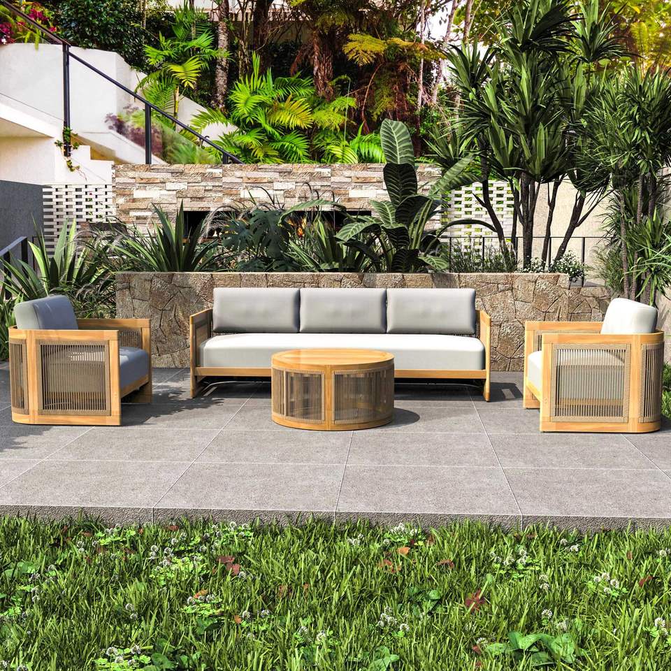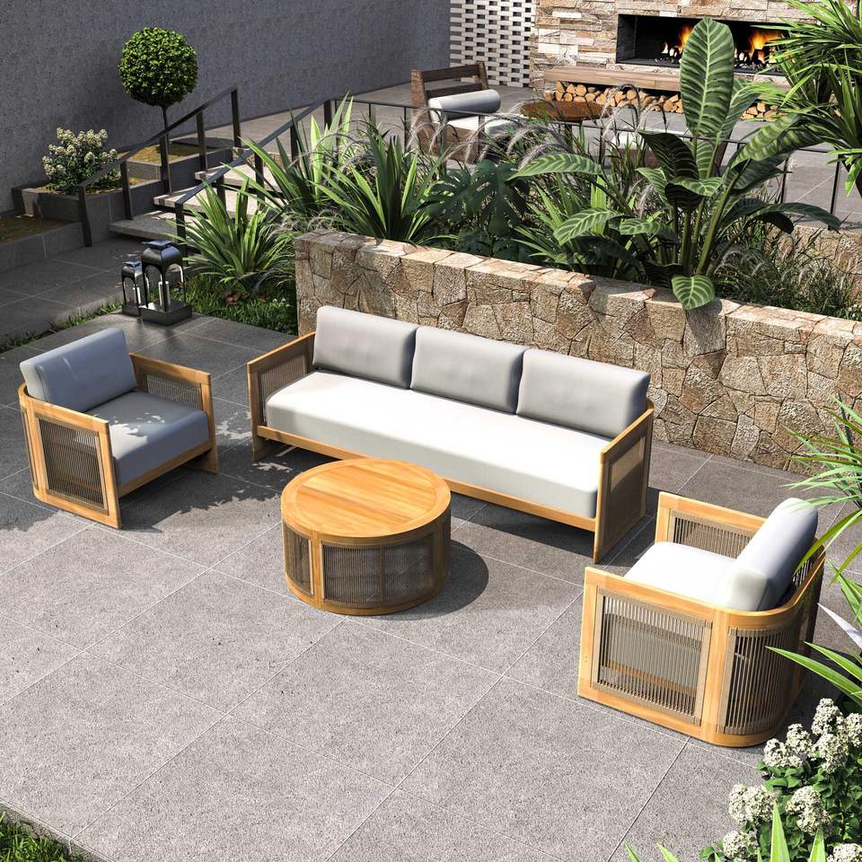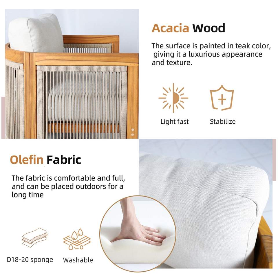Set da Conversazione per Patio in Legno di Acacia a 4 Pezzi con Cuscini Beige per Arredo Giardino Modello D0100X35MS6