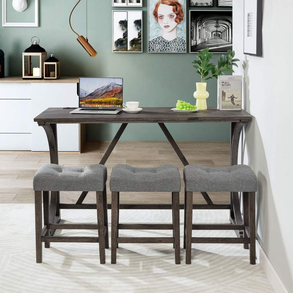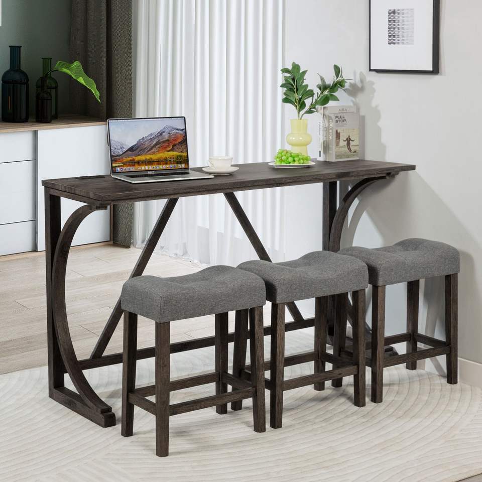 Set da 4 Pezzi con Tavolo da Bar e Sedie con Presa di Corrente, Arredamento per Sala da Pranzo, Include 3 Sgabelli Imbottiti