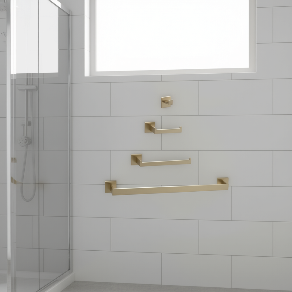 Set di Accessori per Bagno in Ottone Spazzolato Montaggio a Parete Contemporaneo 4 Pezzi Finitura Premium