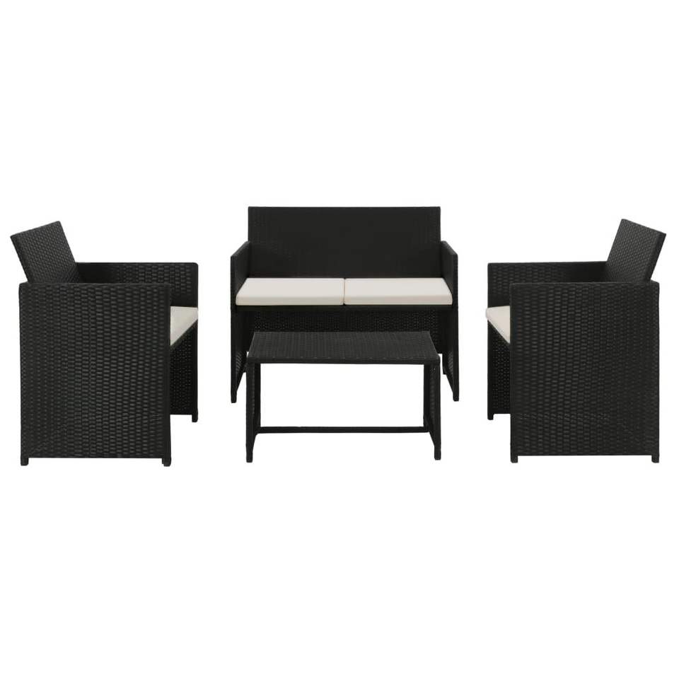 4 pezzi Set da salotto in Poly Rattan nero con cuscini mobili da esterno