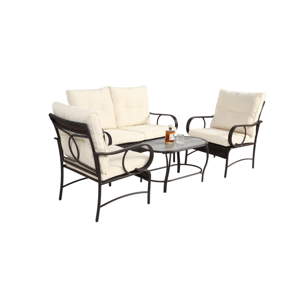 Set di 4 pezzi di mobili da giardino in Rattan marrone da esterno in vimini divano da conversazione con cuscino per portico da giardino