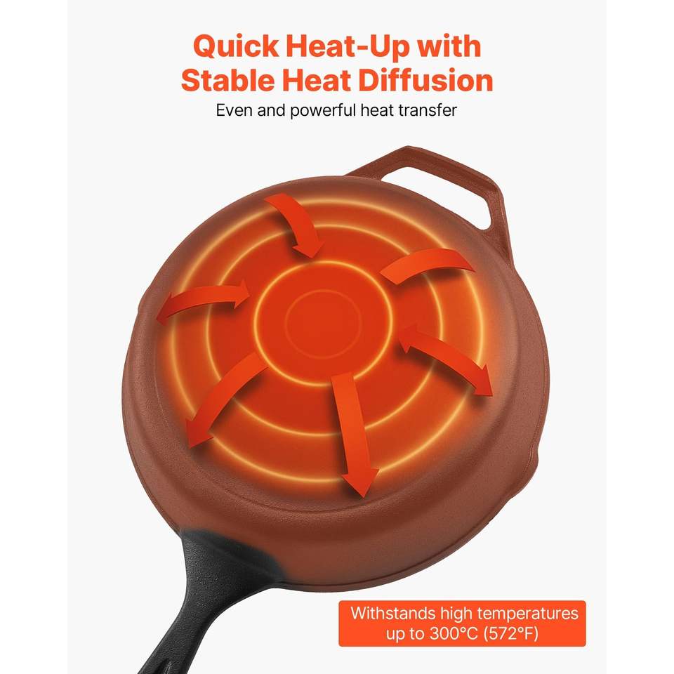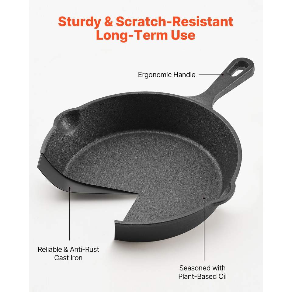 Set di 4 Padelle in Ghisa Pretrattate con Manici in Silicone Resistenti al Calore, Misure 6, 8, 10, 12 Pollici