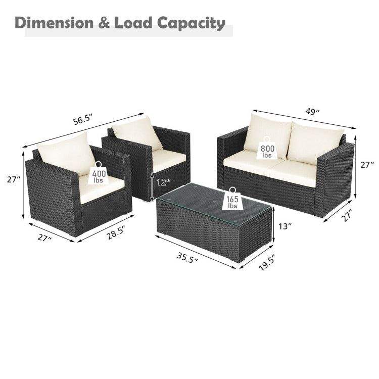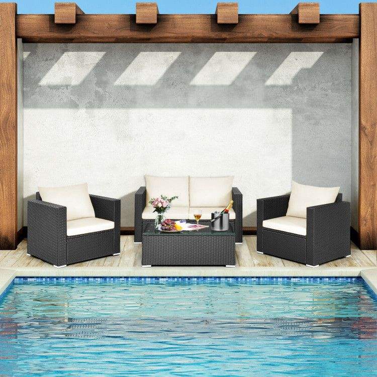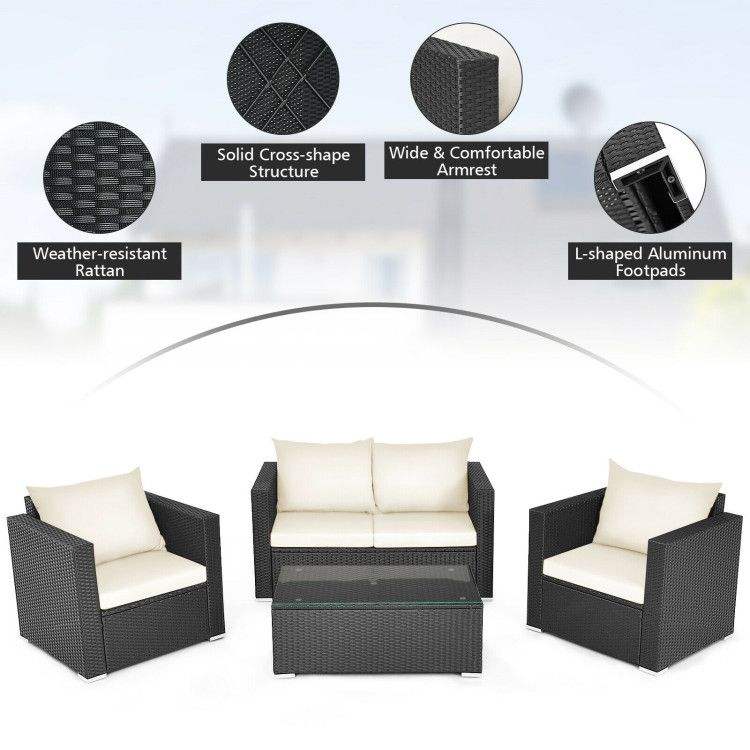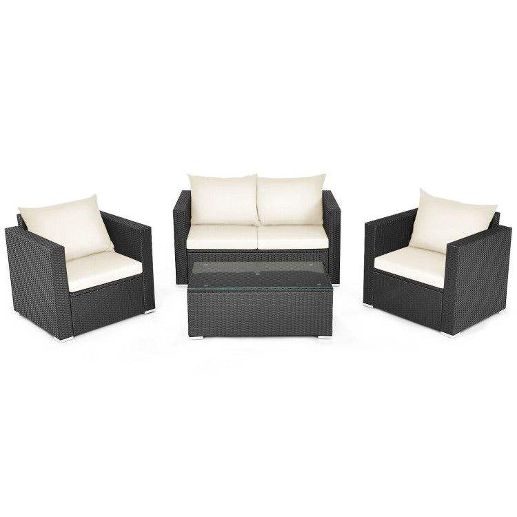 Set da Conversazione in Rattan a 4 Pezzi con Cuscini Imbottiti per Arredamento da Esterno