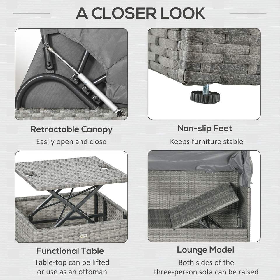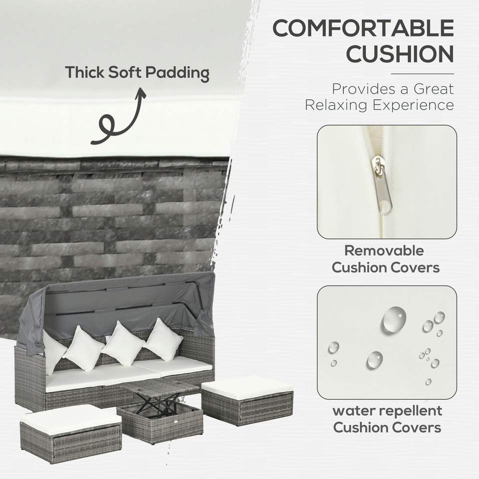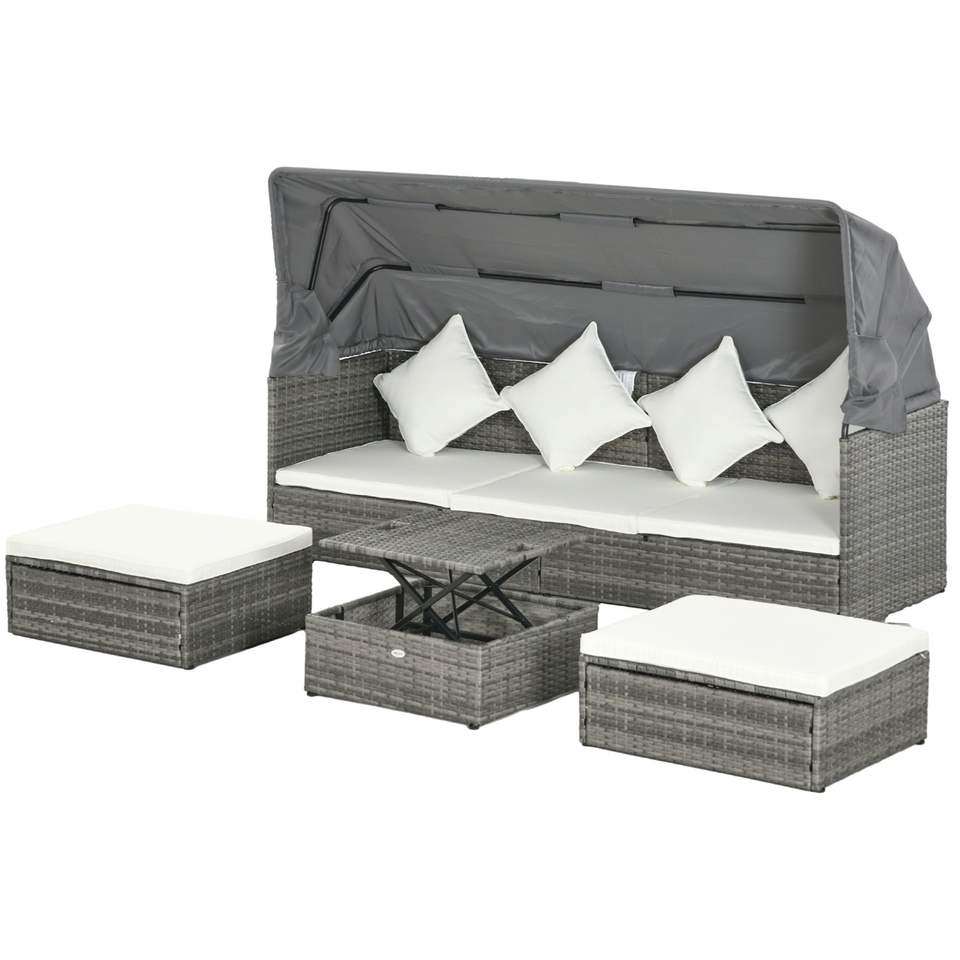4-Piece Cream Outdoor Rattan Garden Set Retractable Canopy Wicker Sectional Height Adjustable Table for Outdoor Entertaining