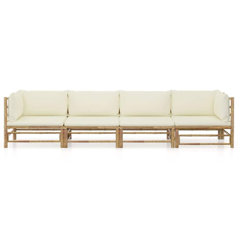 Set da salotto con cuscino in 4 pezzi bianco crema e bambù per il relax in giardino